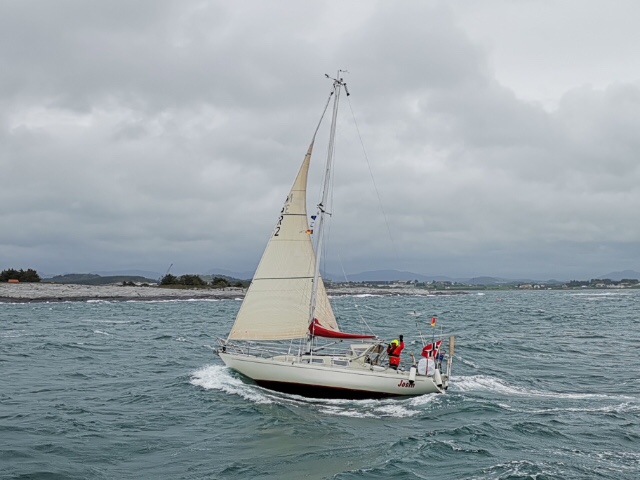 Tuesday morning, more sunshine! But, a northerly wind almost on the nose up the Karmøy Sound did not encourage close-hauled sailing. Another sailboat tried it and gave up after an hour or so. Much, pay attention, ships traffic in to Haugesund. Quayside not very fender-friendly, and dauntingly high above Josin’s deck level to get ashore. Dinner was one of the succulent passage stews which M had made, and now needed non-passage eating.