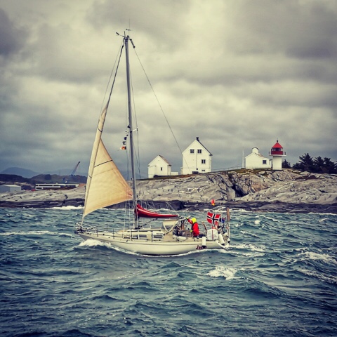 South west wind, 10-12 kts, what more could we ask for to waft us the short distance to Skudeneshavn. Motored through the labyrinth of Kvitsøy just for fun, took in the sails just at Skudenes’ sheltered harbour entrance, and puttered in past picturesque buildings to the inner harbour, where all was peace and quiet in the holiday sunshine. Few boats. Few people. Town square’s benches sparsely utilised. We wandered all along the serpentine narrow street of the old town out to the “look at the view” bench. We viewed. We returned. Not even the ice cream parlour was open. Back to boat and chill out.