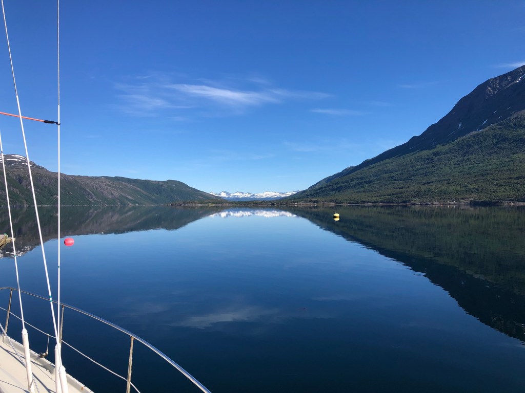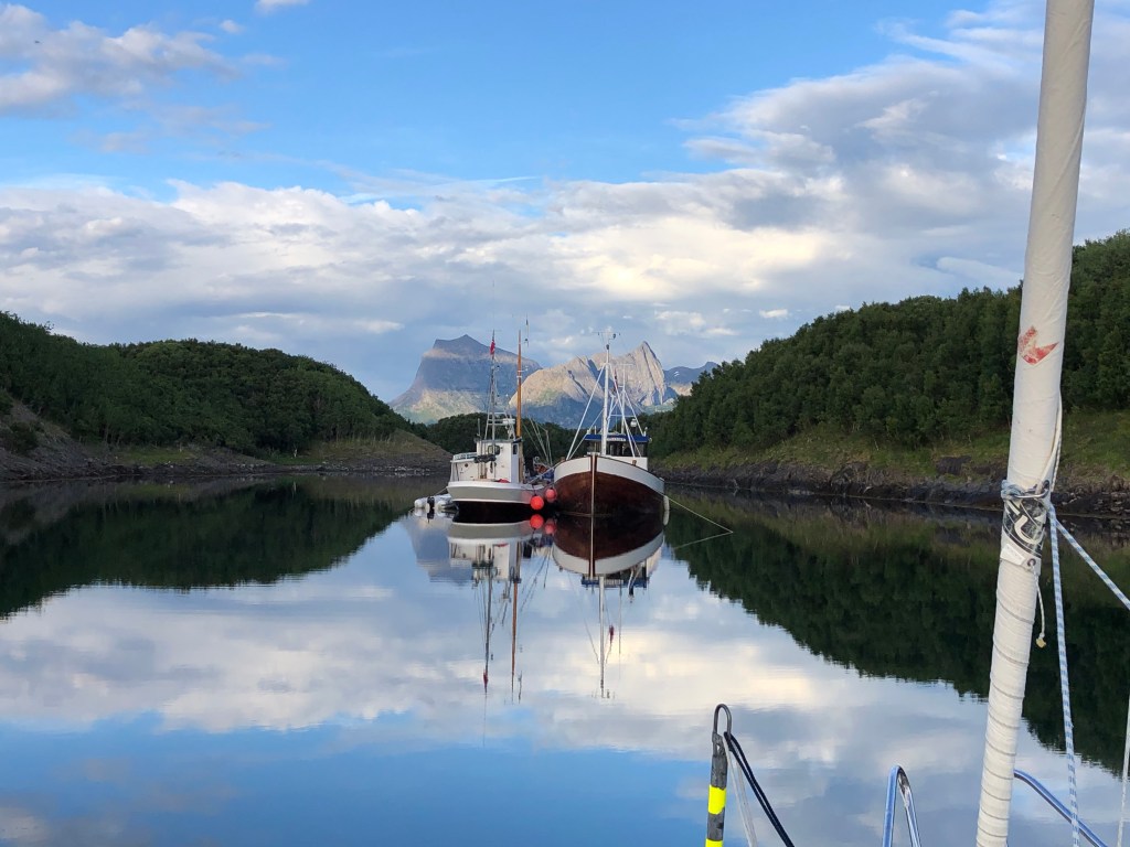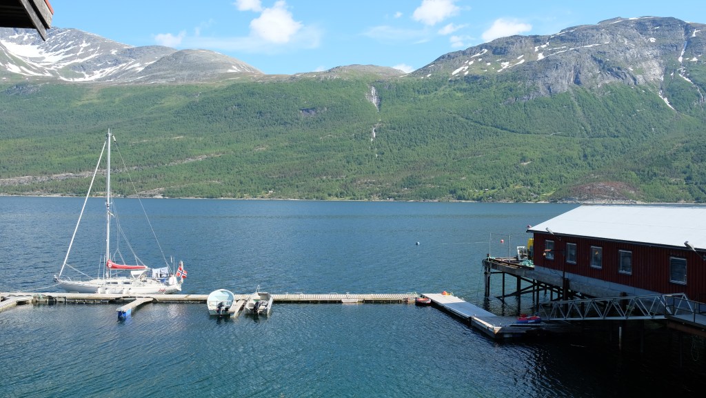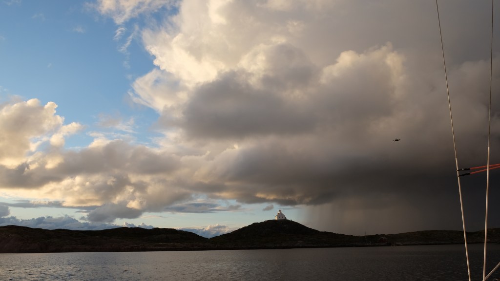 Next stop Rørvik, when the weather clears a bit. Alls well.