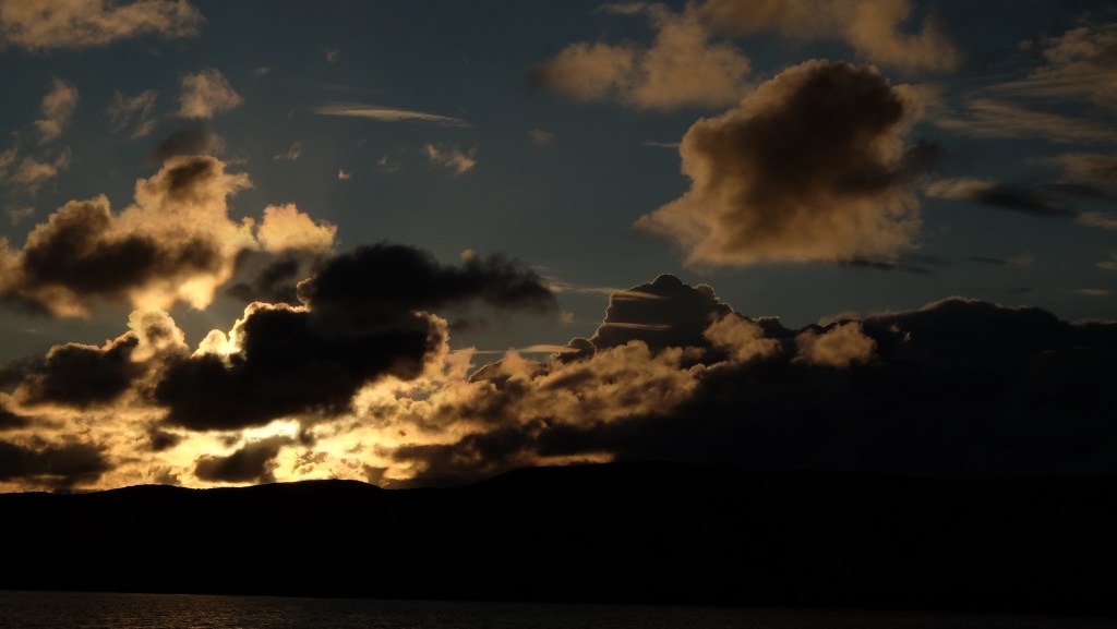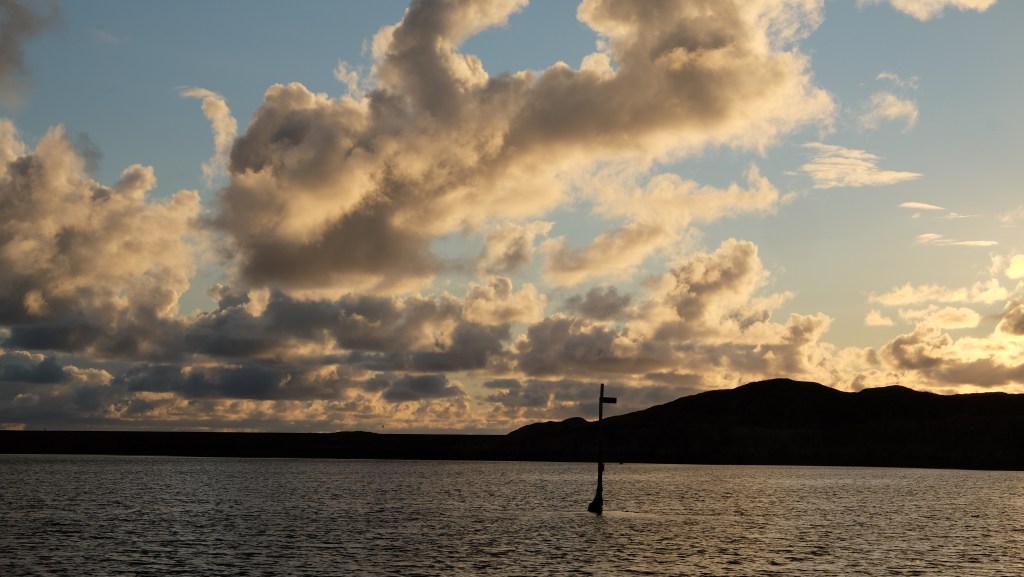 In late evening the other vessel returned and tied up alongside the first. I asked if it was OK that we stayed where we were and was told No Worries in the local dialect, with the offer of freshly-caught fish. Yes please! Guy came with a plastic bag of fillets of saith, which half-filled my bucket. “Need that much”, and a friendly good night. So I will be eating fish for dinner for a while. Amazing!