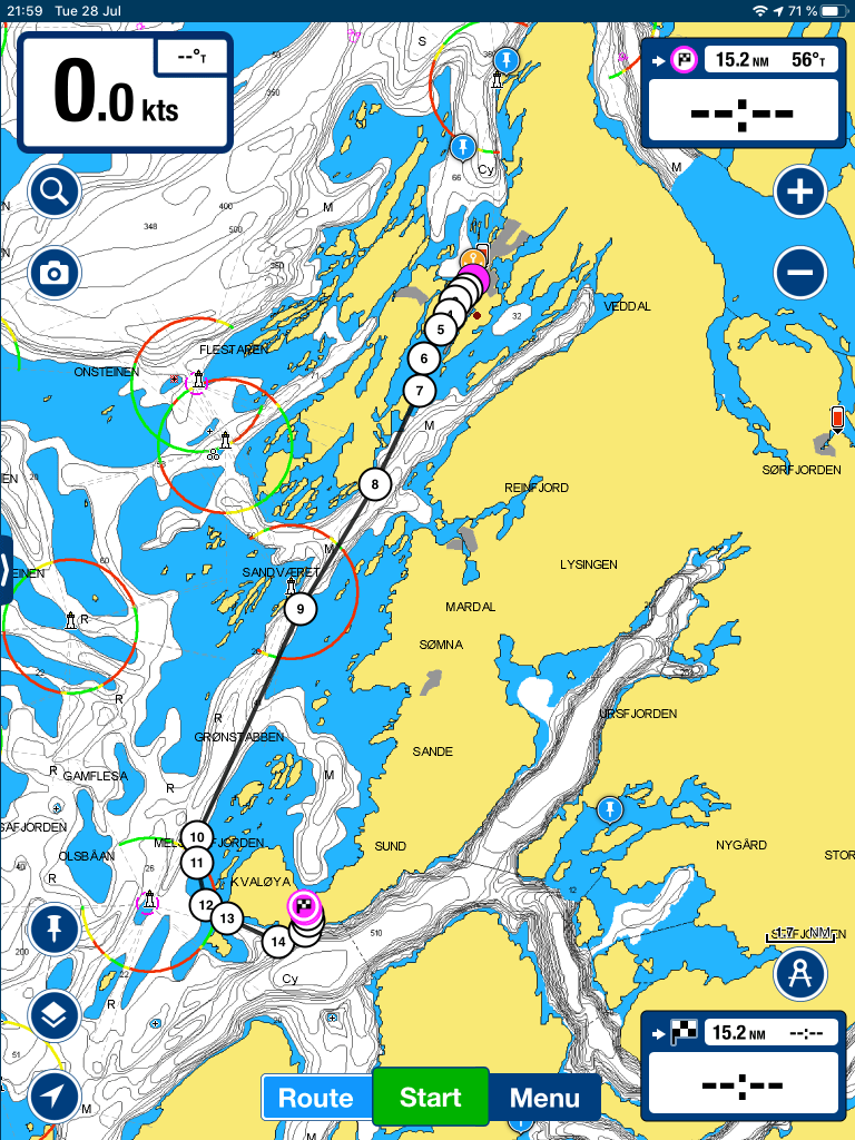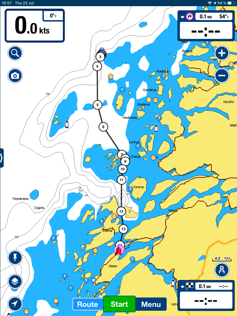 There was no one around when we arrived and tied up to a handy pontoon, so I walked to the cottage in the middle, where a couple were enjoying the sunshine and a sundowner. They assured me that it would be quite alright to stay there. Chatting historically revealed that they were the next generation of cottage owners, and that the one next door, which was the one with which I had had contact previously, was also now owned by the next generation, and I was given a name, the daughter, who lived now on the south coast, maybe Grimstad. Must research this when I get home, and maybe at last deliver the pictures, twenty years late. (Hope I can find them!).