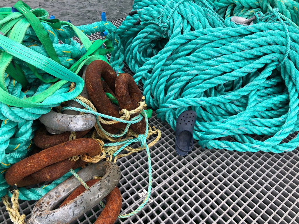 Sjøvik is now the base for a fish-farming operation, and one of their vessels, a very functional work-catamaran, was tied up, and all sorts of new equipment was “stored”, also on the pontoon. Immensely strong stuff this. Shoe for comparison: