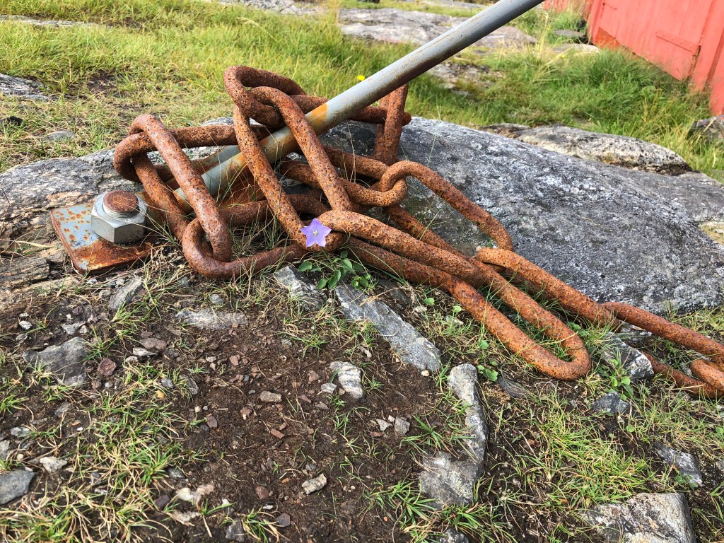 The ravages of time create art. Who would have guessed that the blacksmith’s hammering which forged this utilitarian maritime necessity would turn out so artistic? And nature finds a way amongst the cast-offs.